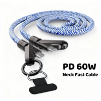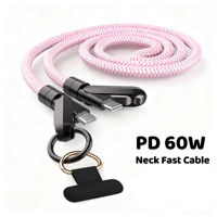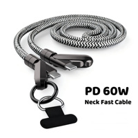 Câble USB C multifonction Premium 60W Fast CharOEM 60w avec lanière de cou portable Tresse en nylon robuste et câble en alliage de zinc pour genoux