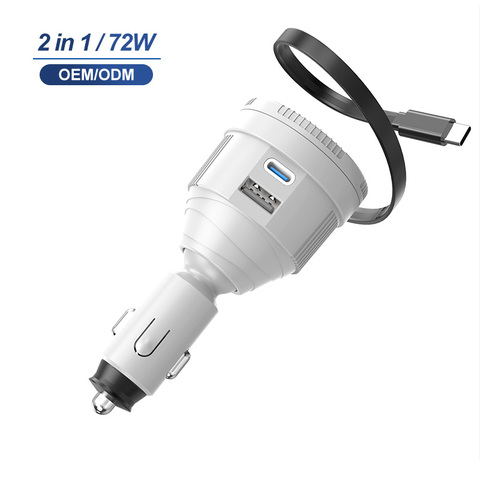Trending New 36W/72W Auto carregador de carro retrátil inteligente carregamento rápido com built-in USB C cabo para todos os telefones