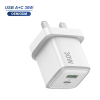 อะแดปเตอร์ชาร์จไฟแบบติดผนังบางเฉียบ 30W สำหรับ UK 2 พอร์ต QC18W PD 30W ชาร์จเร็วสำหรับโทรศัพท์มือถือ