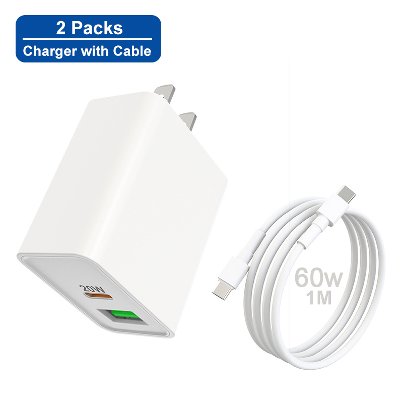 Schitec HEISSER Verkauf 2er-Pack Typ-C-Ladegerät-Set Schneller Versand Wand-USB-Ladegerät 20W mit 60W USB-C-Kabel zum Aufladen von Mobilgeräten